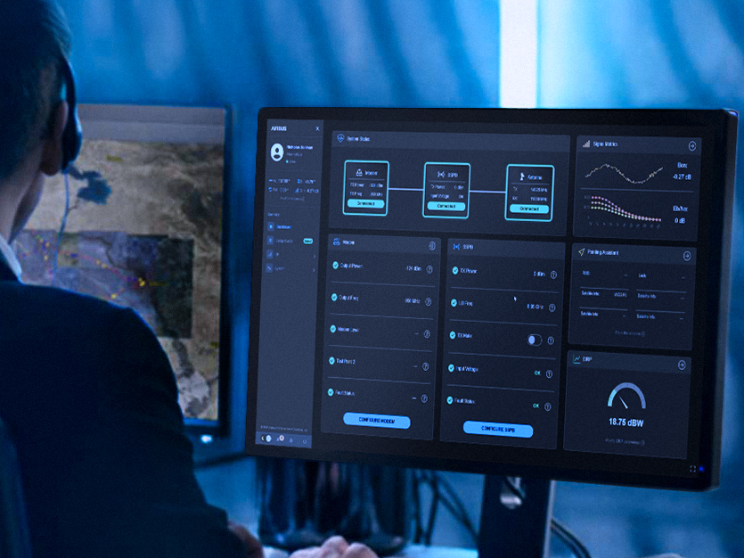 Monitor the status of all connected devices – RDU/ OTIU, modem, SSPB, and spectrum analyzer – in one central location, eliminating the need to toggle between multiple applications and web interfaces.